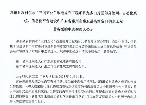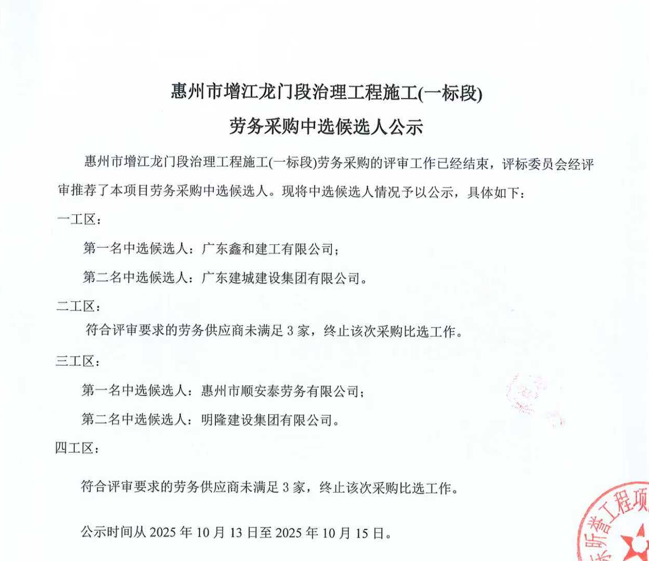 惠州市水電建筑工程有限公司勞務(wù)供應商庫擴庫評審結(jié)果公示……